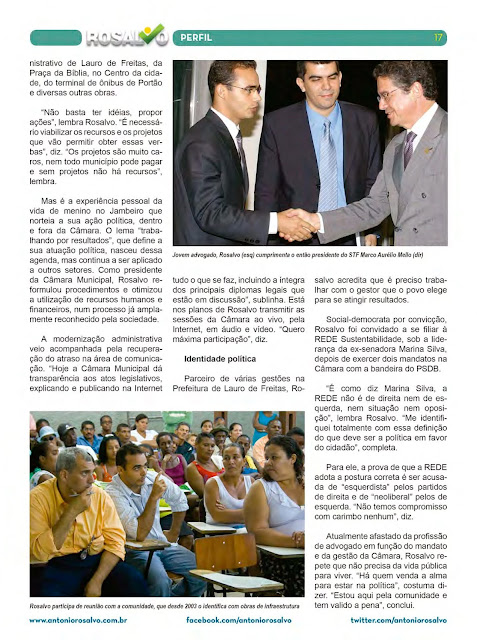 O presidente da Câmara de vereadores de Lauro de Freitas, Rosalvo (PP), na última semana divulgou uma série de materiais com prestação de contas do seu mandato de vereador . O conteúdo mostra inúmeras ações e projetos de leis criadas pelo o edil. Rosalvo é o possível candidato a vice-prefeito na chapa de Moema Gramacho(PT).